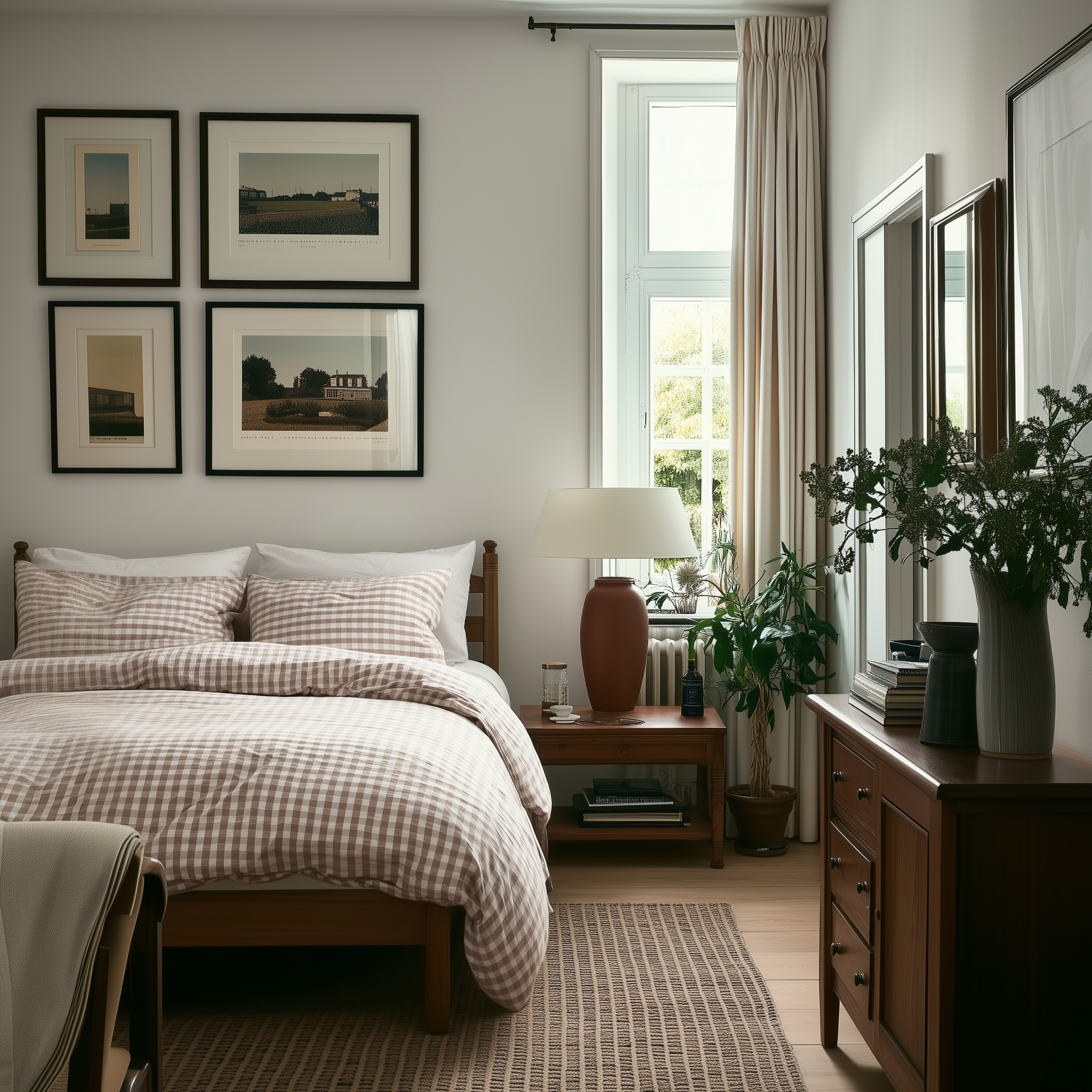 Steinvasket sateng i krepp - Gingham Kirsebær/Bomull