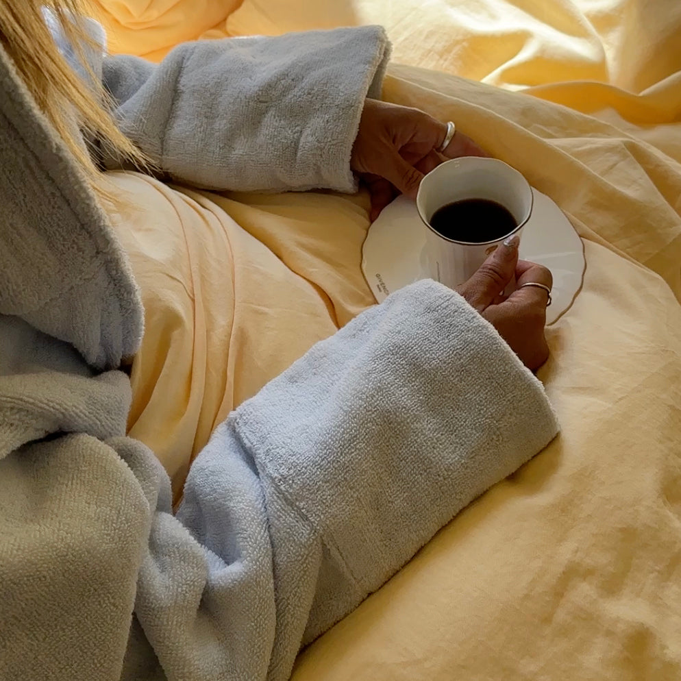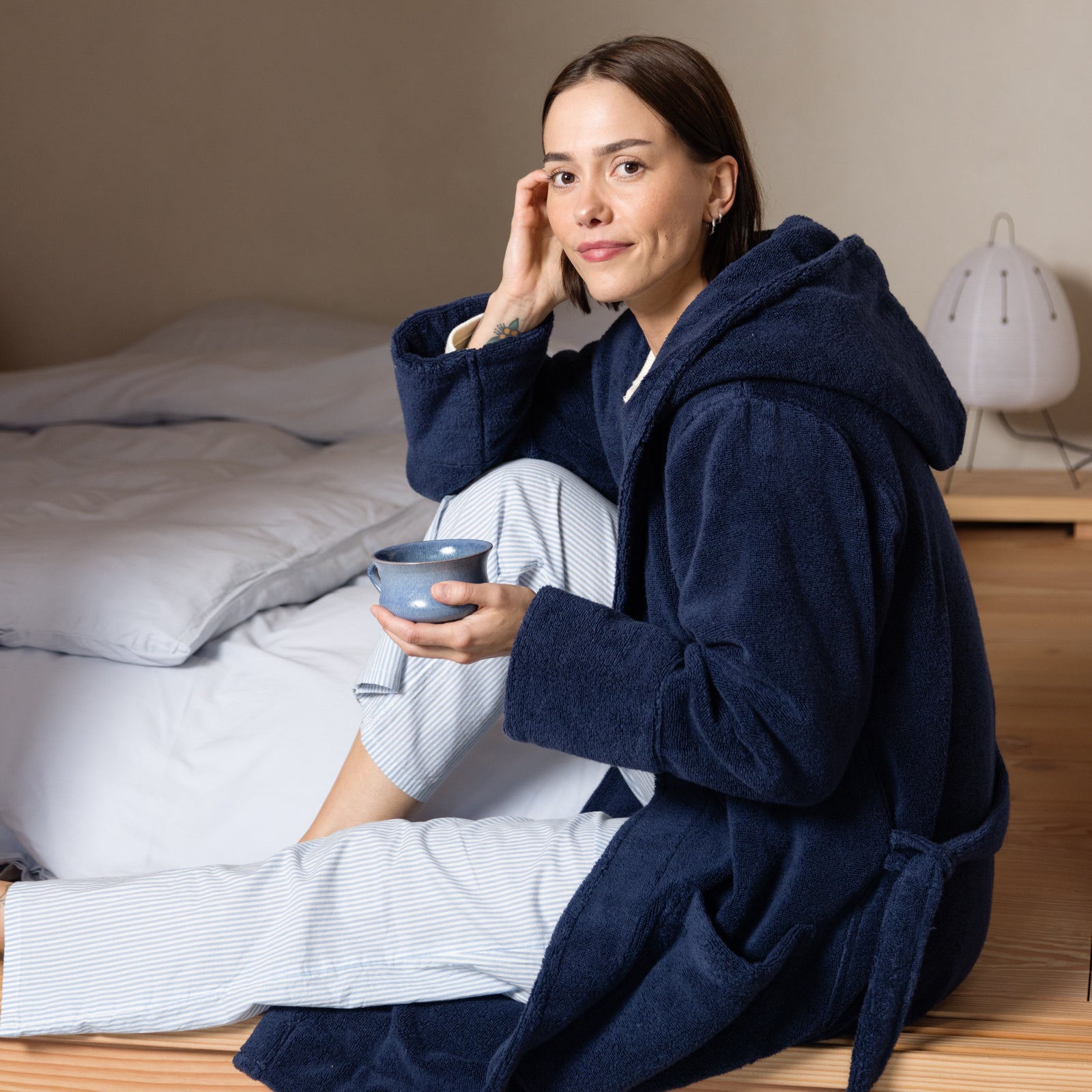 Vår luksuriøse og supermyke morgenkåper passer perfekt til alle døgnets tider. Laget av 100% økologisk, langfibret bomull fra Tyrkia. De er absorberende og hurtigtørkende, og GOTS- og OEKO-TEX-sertifisert.