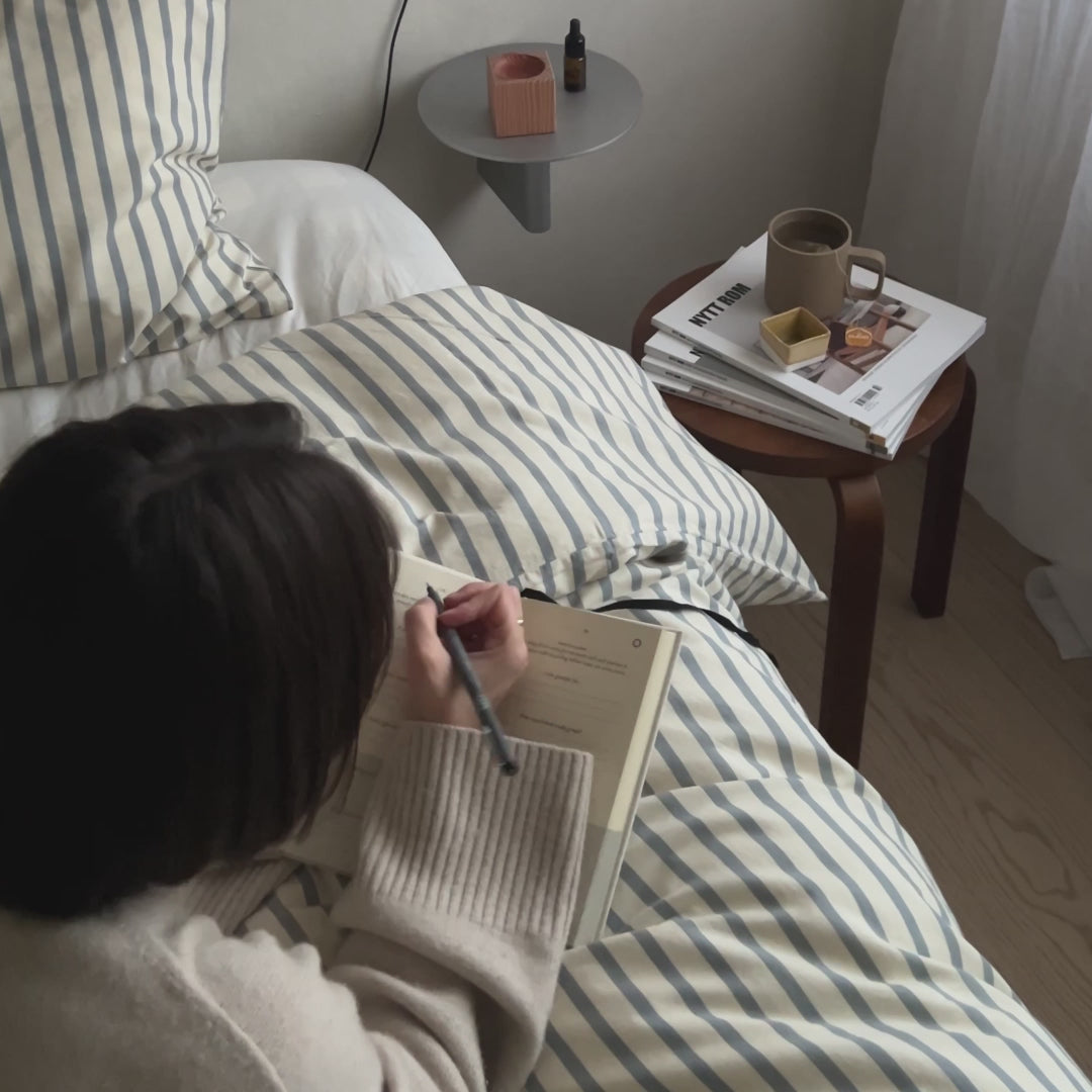 Vi anbefaler å vaske sengetøyet på vranga, med skånsomt vaskeprogram på opptil 60 grader. Sengetøy kan også tørketromles på lav varme, men vi anbefaler lufttørking.