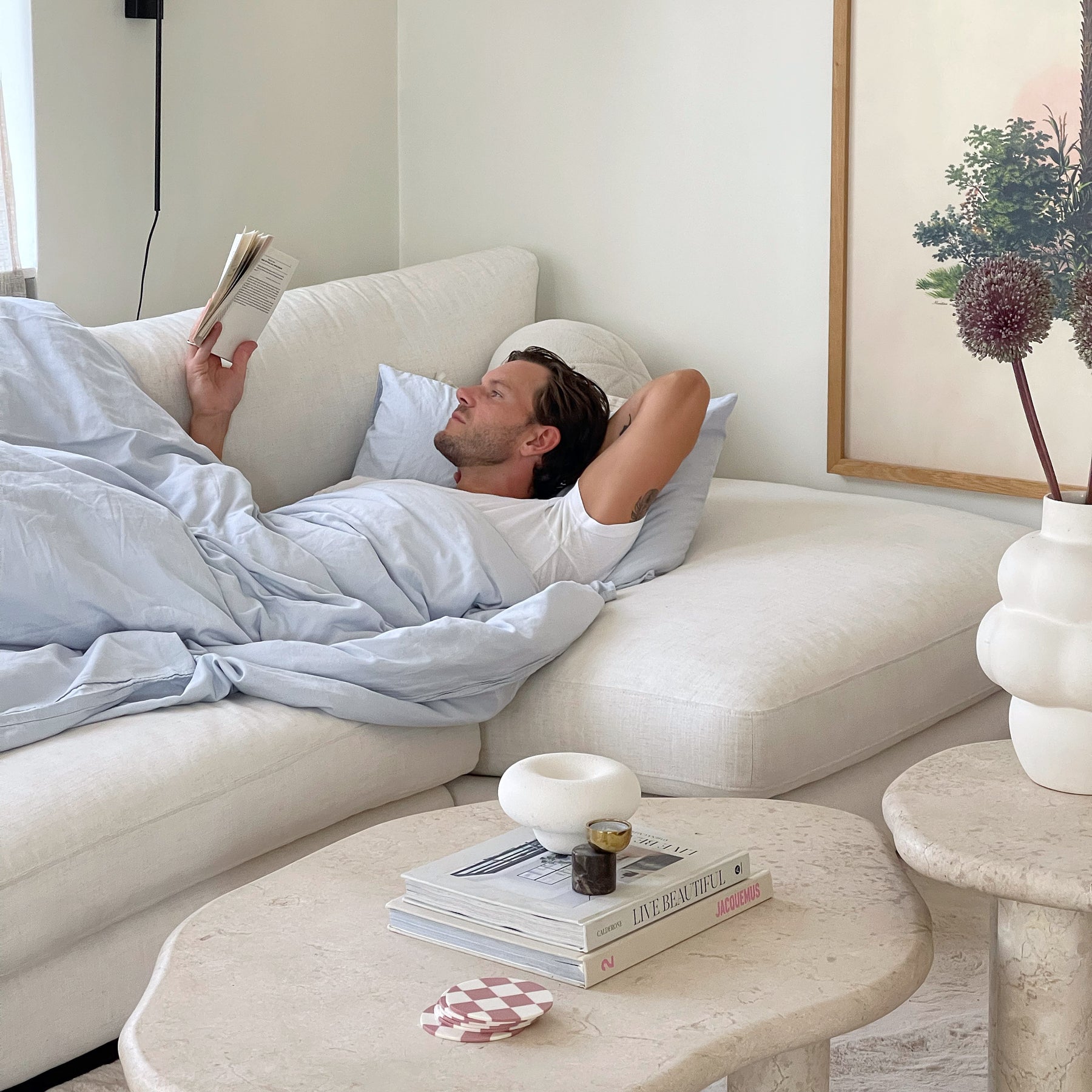 Vi anbefaler å vaske sengetøyet på vranga, med skånsomt vaskeprogram på opptil 60 grader. Sengetøy kan også tørketromles på lav varme, men vi anbefaler lufttørking.
